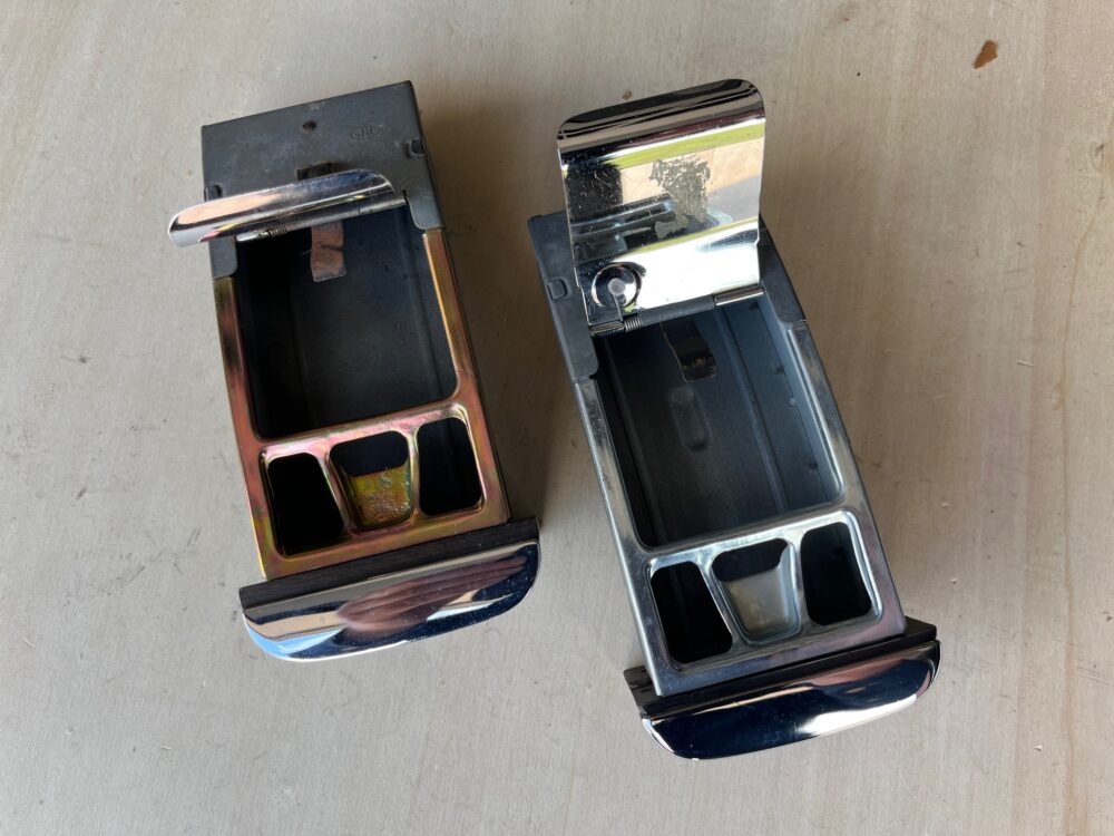 2 zeer mooie gebruikte asbakken , 1x met hout voorpaneel , prijs is per stuk