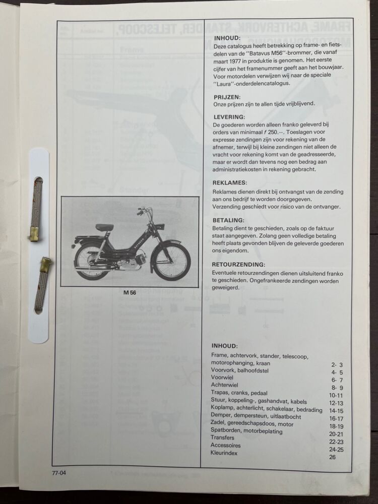 Batavus M 56 Onderdeel boek 1977