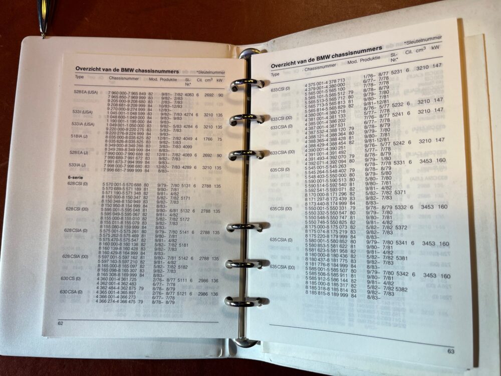 Handig boekje met heel veel info over BMW chassis nummers, motor type , product info etc etc