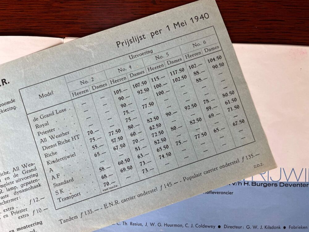Burgers Rijwiel folder 1940 aantal