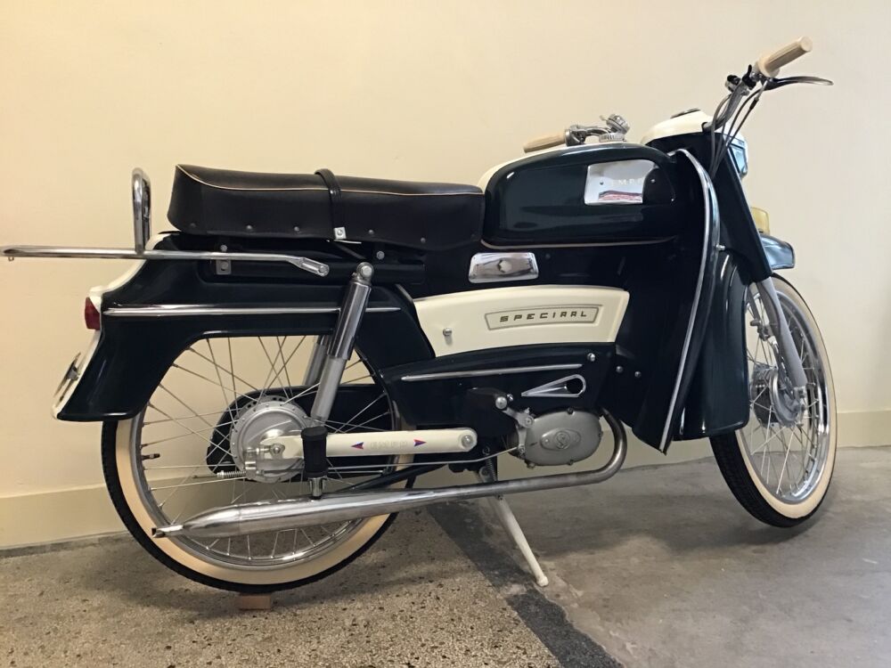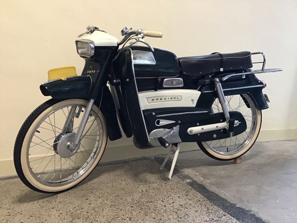 Nog geheel origineel en ongerestaureerd , zeldzame brommer van dit rijwielmerk uit Vorden welke vanaf 1962 sommige Cyrus brommers onder eigennaam verkocht. Deze Empo heeft een Sachs motorblok met 2 versnellingen.