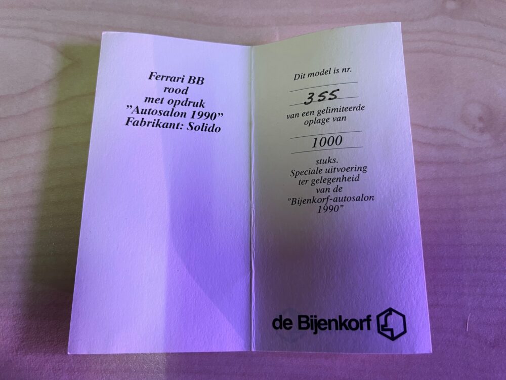 Mooi gedetailleerd model van het merk Solido in de schaal 1:43 betreft een speciale genummerde uitvoering ter gelegenheid van de jaarlijkse autosalon ban de Bijenkorf 1990 nog nieuw in de doos