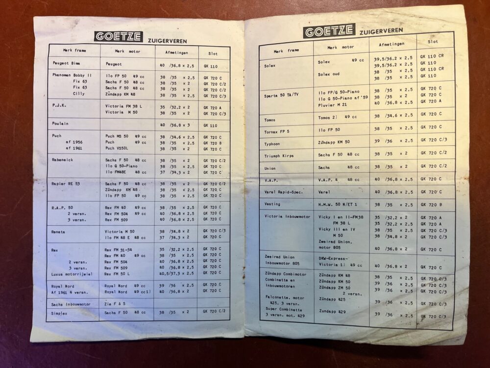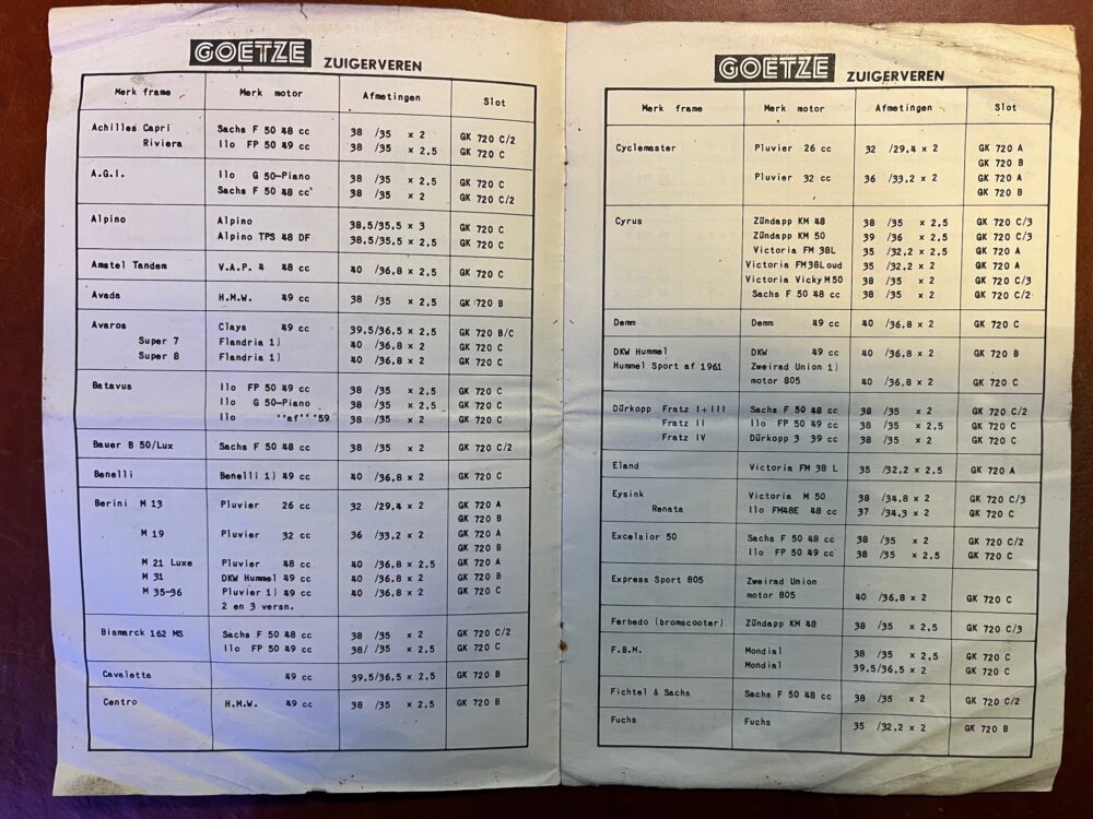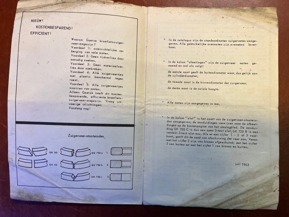 Goetze zuigerveren catalogus aantal