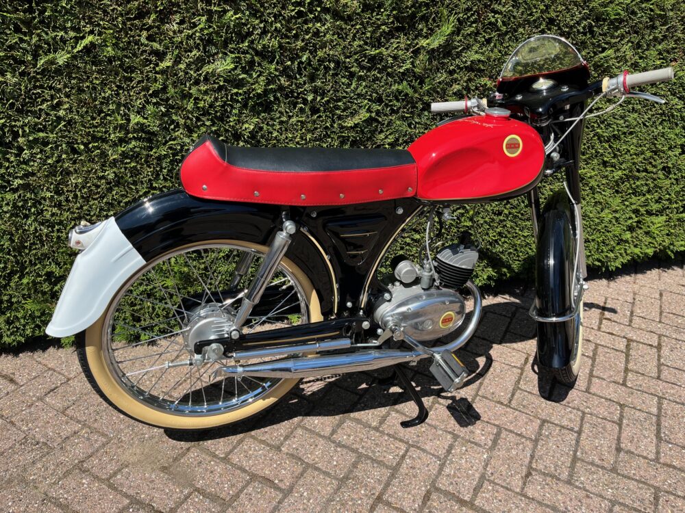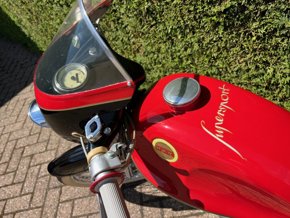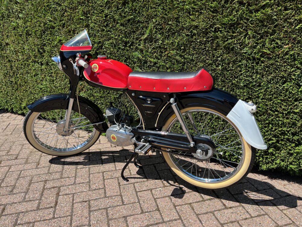 Deze speciaal door HMW ontwikkelde Sport brommer voor de Amerikaanse markt is bijzonder rank en fraai en zeer zeldzaam er zijn er niet veel meer van bekend en deze is uiteraard voorzien van een HMW motor met 3 versnellingen. Deze is perfect gerestaureerd met oog voor de details en is in de kofferbak van een auto uit America naar Nederland gekomen.