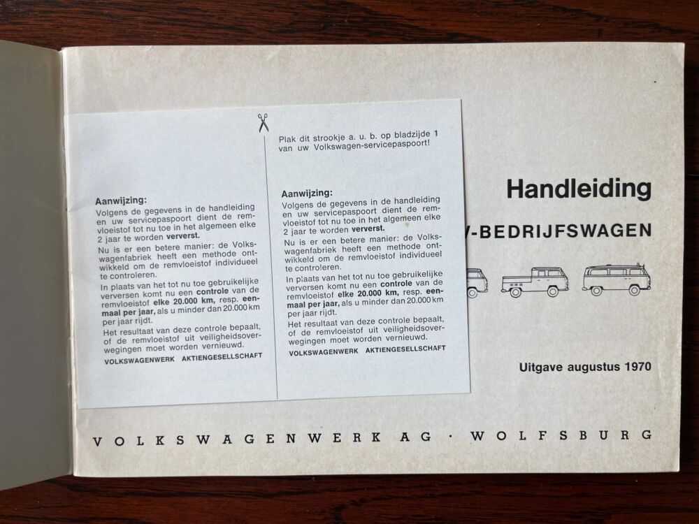 Instructie boek Volkswagen T2 1970 aantal