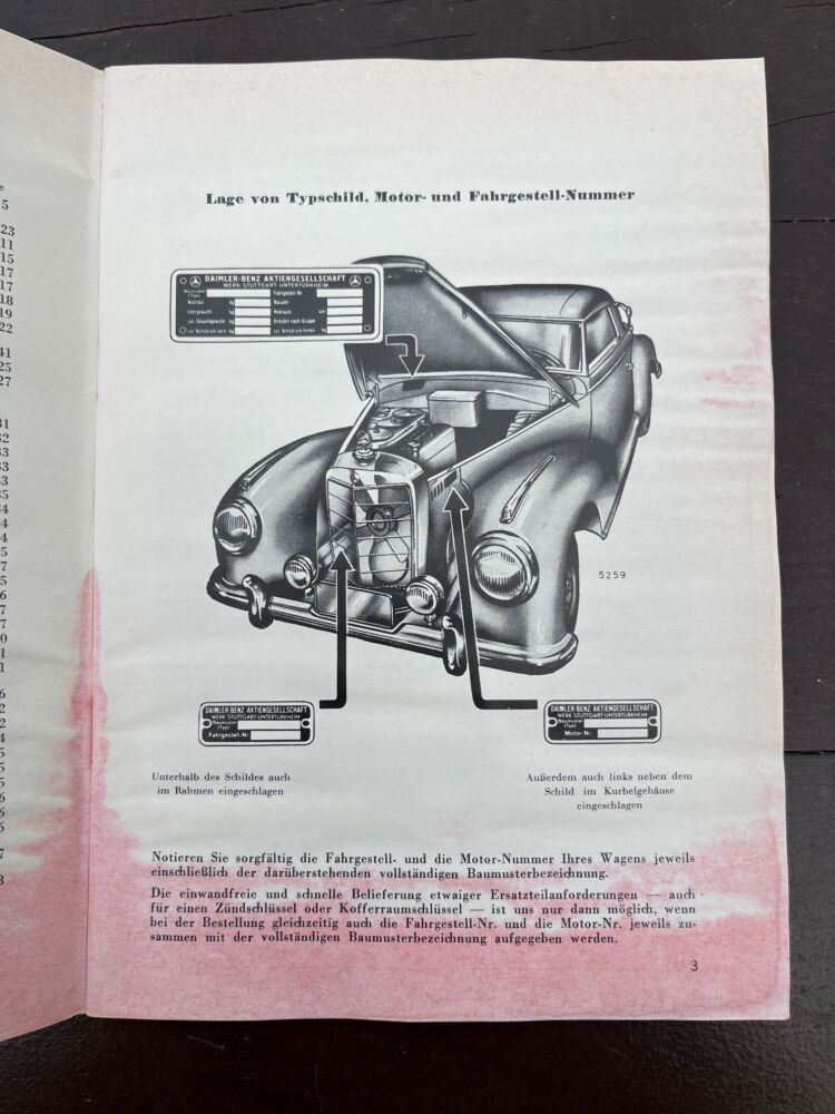 Instructie Boekje Mercedes 300 S 1952 aantal
