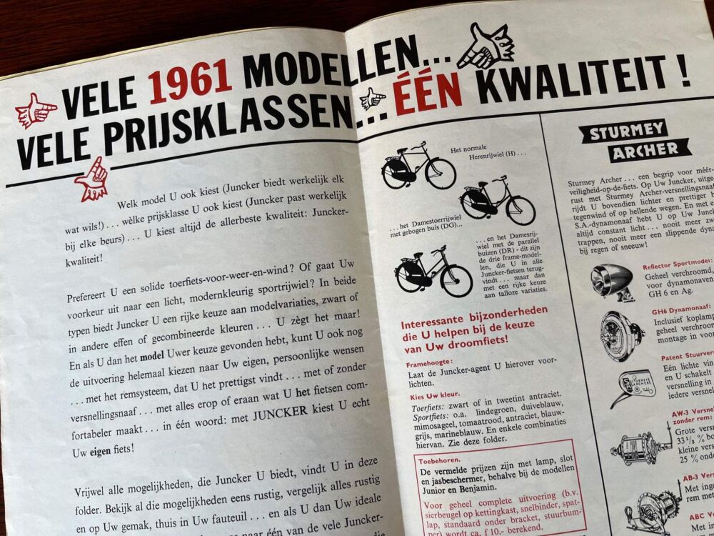 Juncker Rijwiel folder 1961 aantal