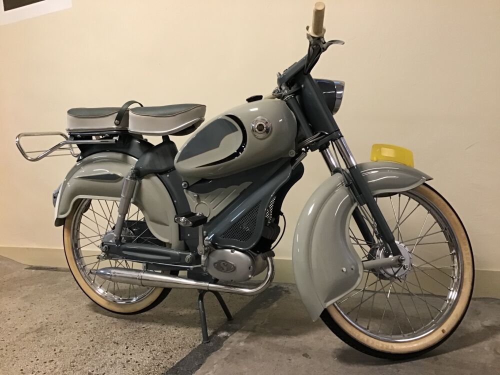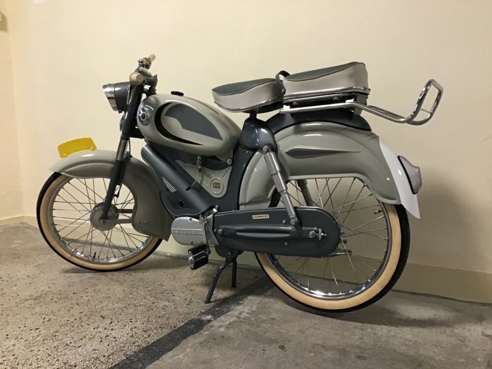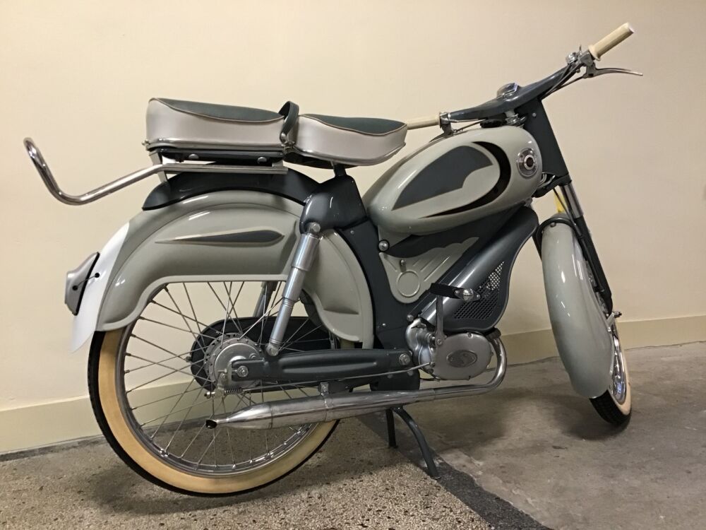 De Amsterdamse fabrieken Locomotief en Simplex zijn in 1954 samen gegaan en maakte vaak dezelfde modellen enkel met een verschillende naam daar op, deze Locomotief met dubbel zit is perfect gerestaureerd met zeer veel oog voor de details en deze is voorzien van een Sachs motorblok met 2 versnellingen.