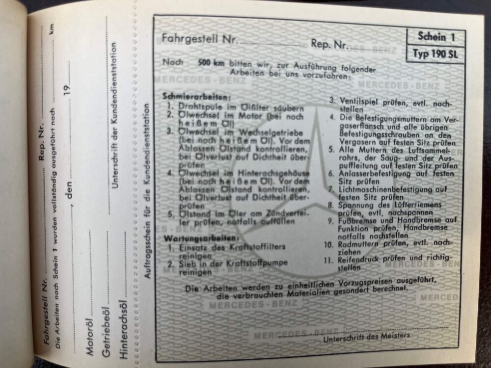Mercedes Serv. Boekje 190 SL 1956 (2) aantal