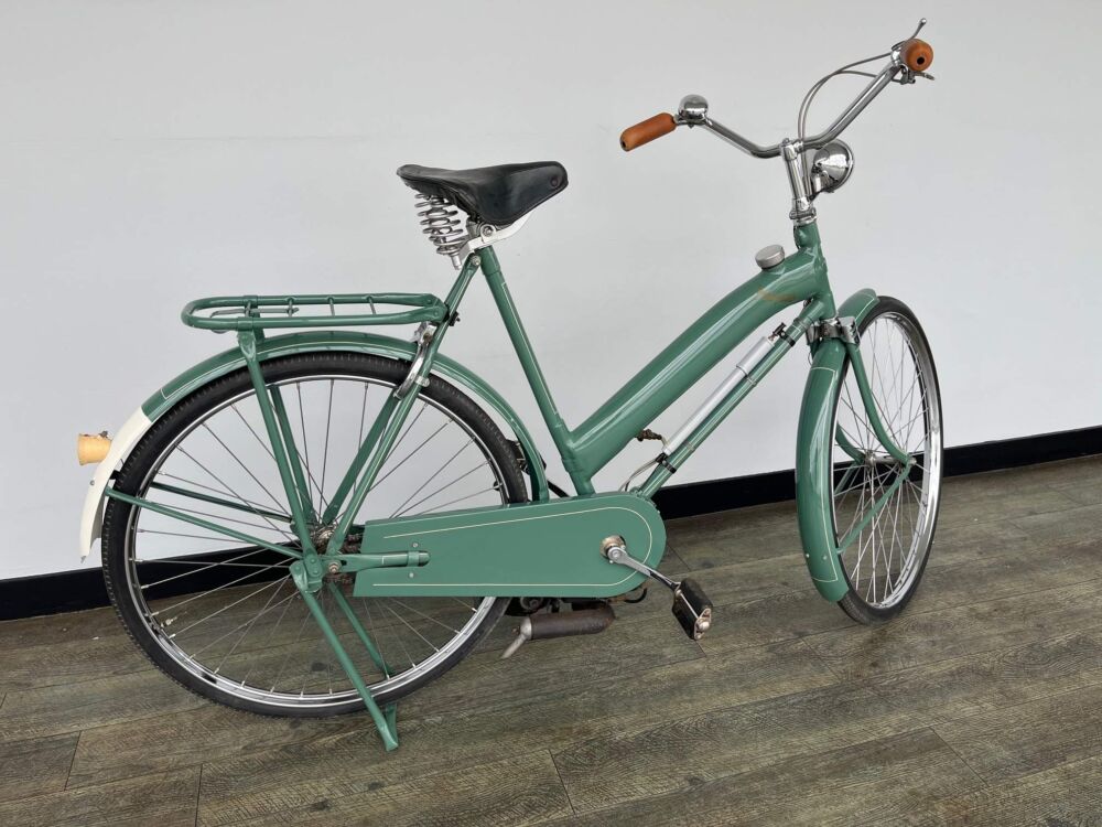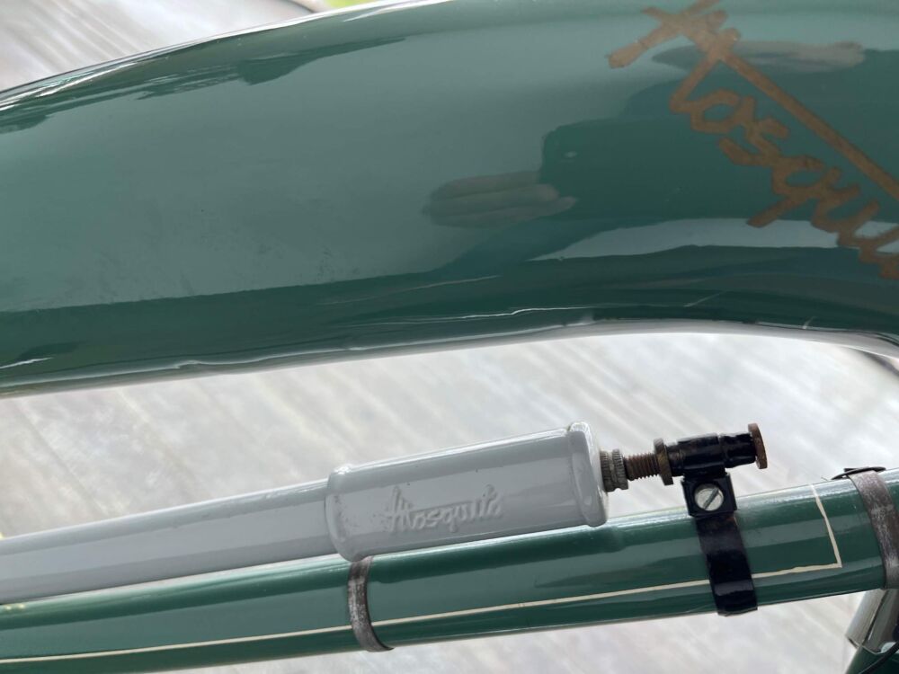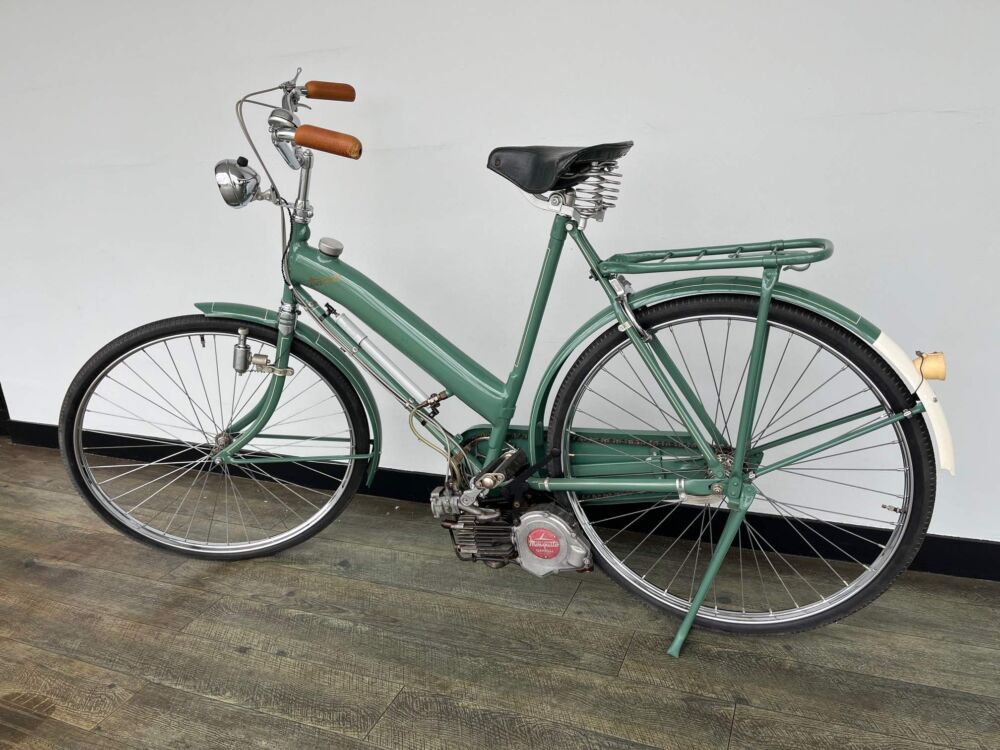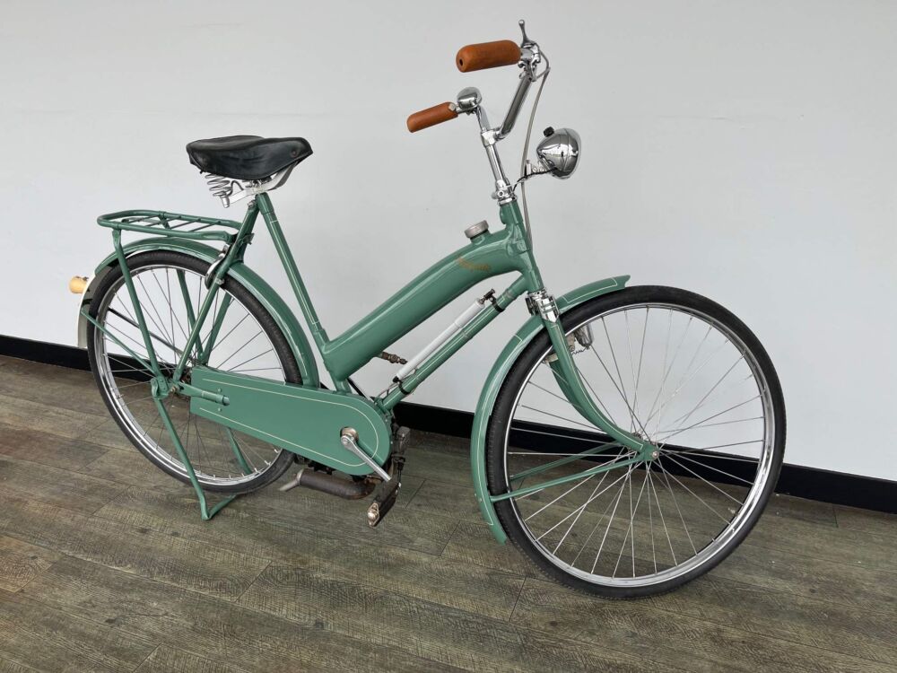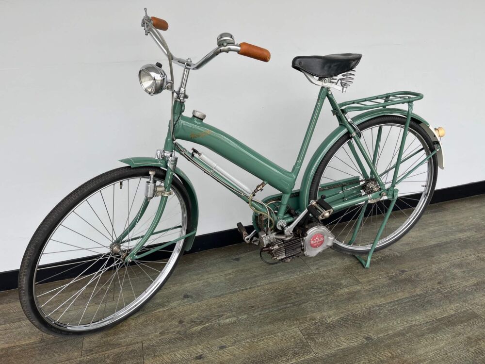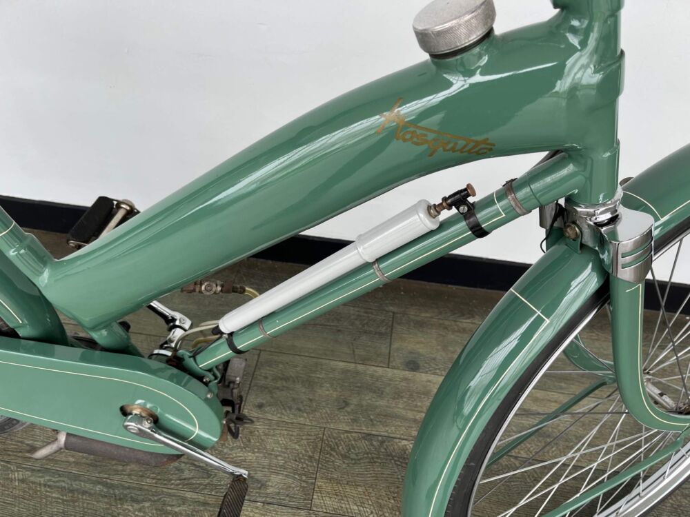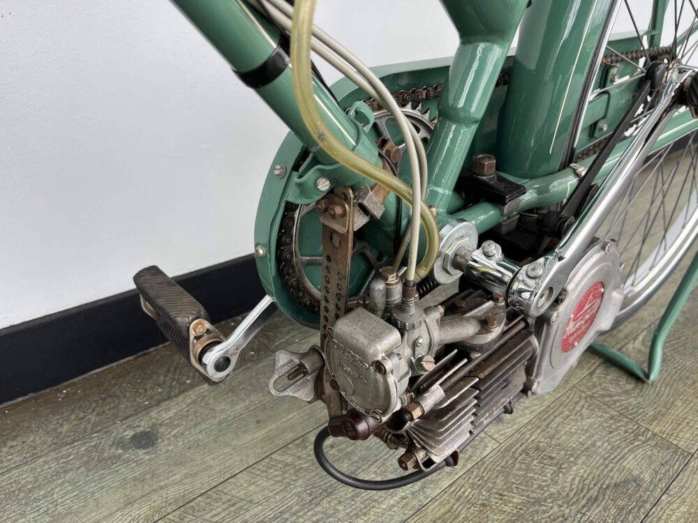 Dit zie je niet zo veel een compleet door Mosquito geleverde bromfiets ,dat maakt deze erg bijzonder, meestal enkel een losse motor met rolaandrijving onder een rijwiel geplaatst. De benzine tank zit erg mooi in het frame verwerkt. Deze Mosquito is perfect gerestaureerd met ook voor detail.