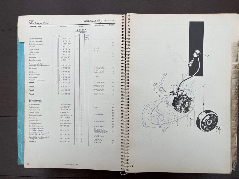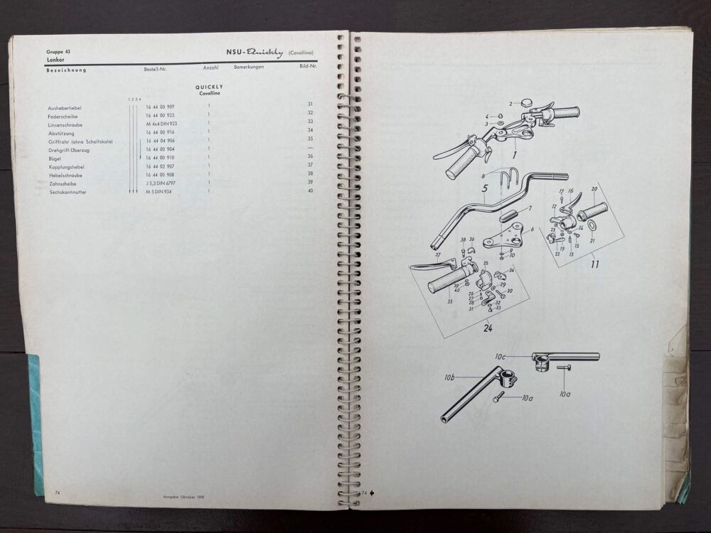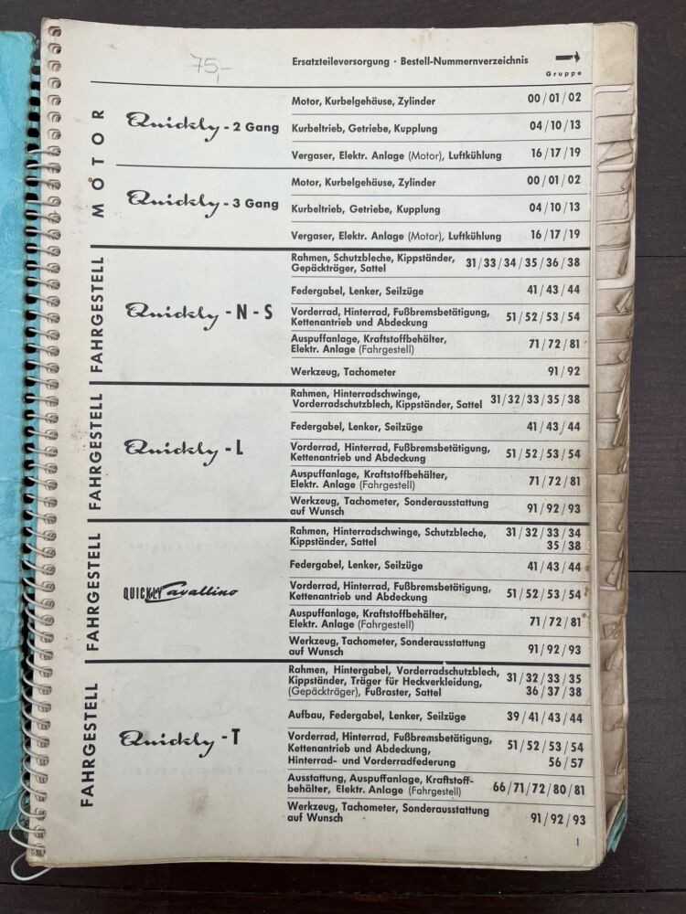 NSU Quickly Onderdelen boek 1959 aantal