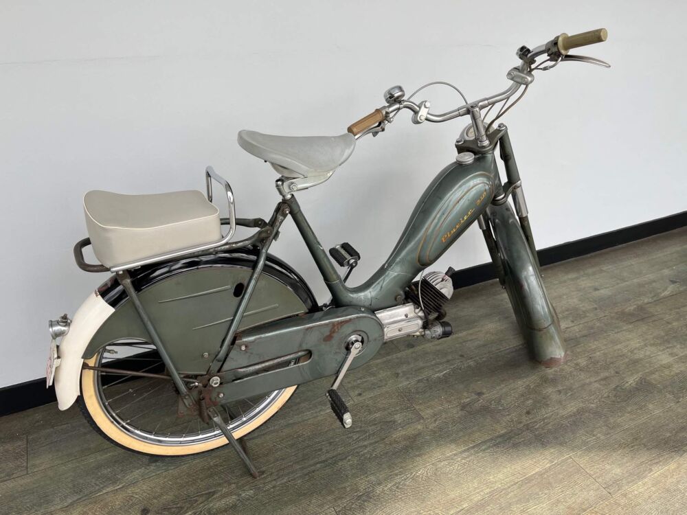 Pluvier enkel geleverd in 1956 ,onder deze naam zijn enkel in 1956 Berini’s geleverd na een ruzie tussen de fabriek en de verkoopmaatschapij in 1957 was de ruzie weer bijgelegd werd het weer Berini, zeldzame brommer dus, geheel origineel en ongerestaureerd voorzien van een Pluvier motorblok met automaat