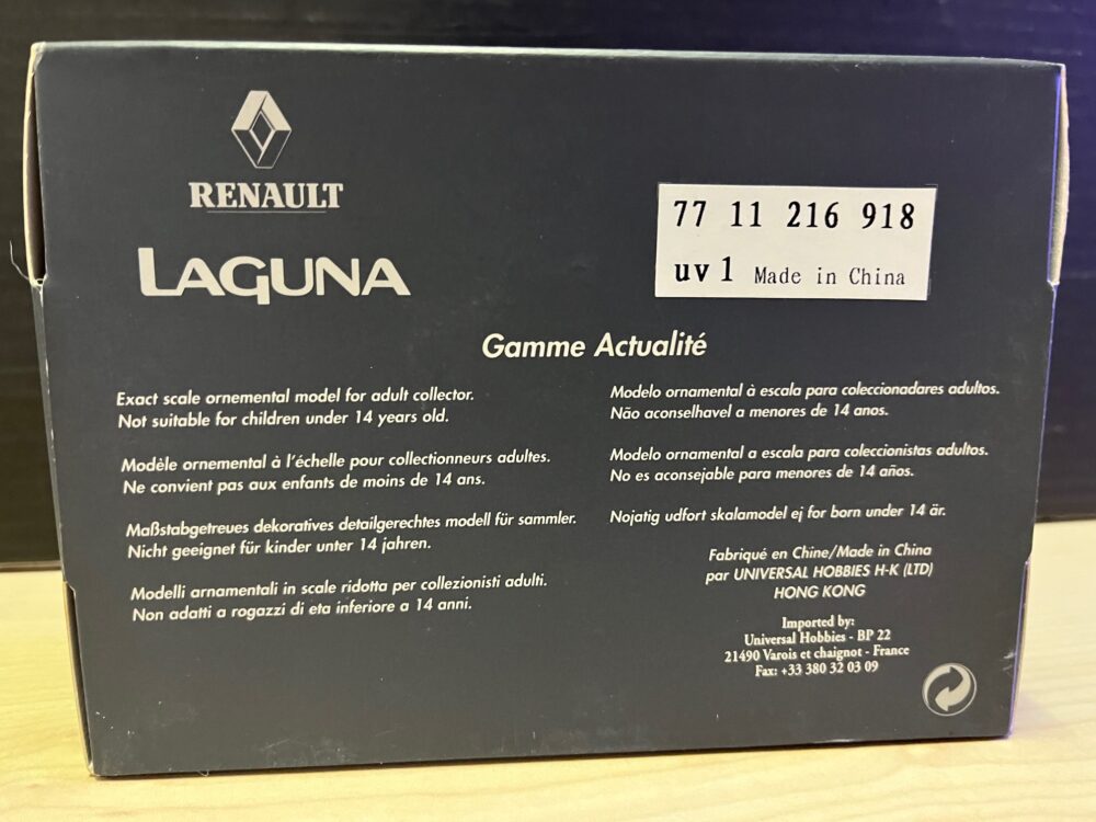 Mooi gedetailleerd model van Universal Hobbies deze was verkrijgbaar bij de off Renault dealer (heeft ook een Renault onderdeel nummer) in de Schaal 1:43