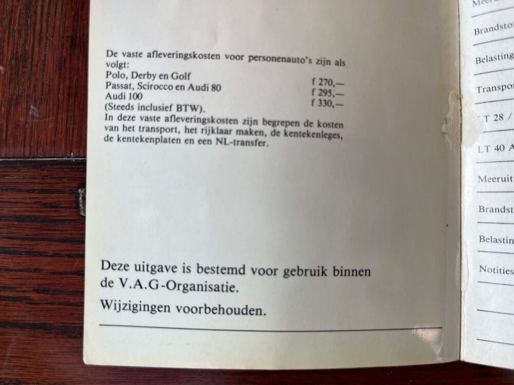 V.A.G. dit betreft een boekje voor intern gebruik binnen de organisatie (Zeldzaam boekje)